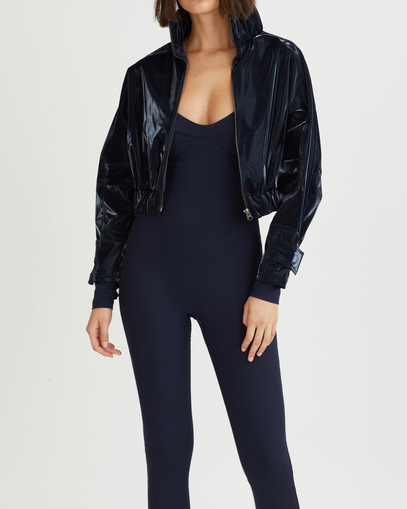 - Styled with a fitted top and heels for a chic and utilitarian-inspired look